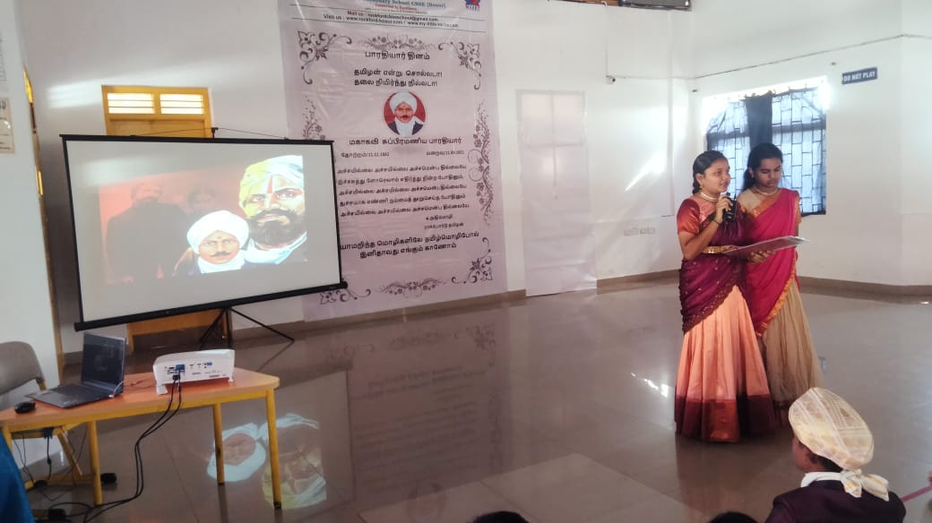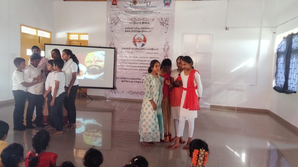 On December 11, 2025, Rockford School celebrated the birthday of the legendary poet and freedom fighter, Bharathiyar, with a heartfelt tribute to honor his immense contributions to Tamil literature and Indian independence. The students showcased their talents through a variety of performances, including an inspiring rendition of one of Bharathiyar's iconic songs, which resonated with patriotism and national pride. Additionally, a moving speech highlighted his vision for a progressive and free India, drawing attention to his revolutionary ideas. A spirited debate followed, where students passionately discussed the relevance of Bharathiyar's ideals in today's society, reflecting their understanding and admiration of his work. This event was a meaningful way for the students to connect with the legacy of Bharathiyar and keep his ideals alive in the hearts of the younger generation.