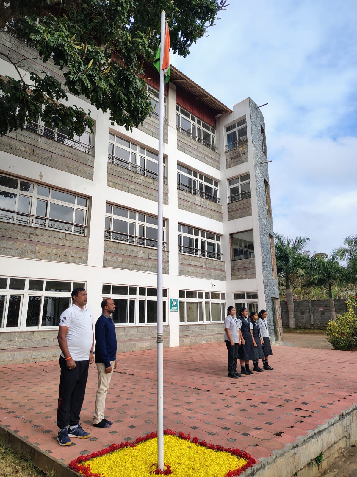 began with the hoisting of the national flag, followed by the National Anthem. Students presented